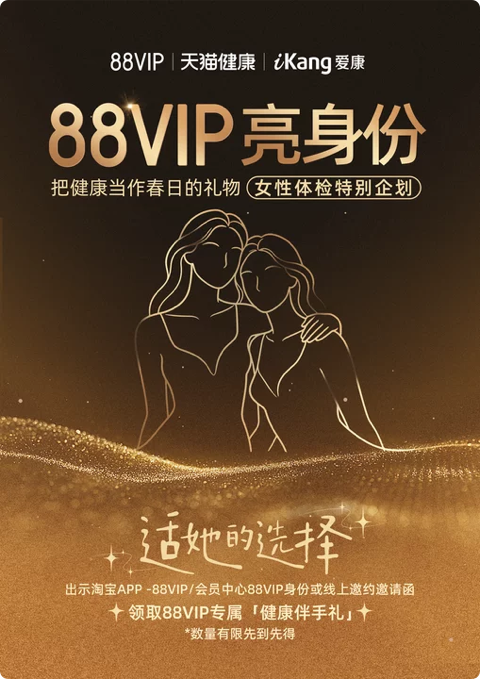 从满足需求到读懂需求,从品质供给到精准适配,从传统营销模式到全域营销范式,88VIP始终以女性视角深耕健康领域,深度洞察女性健康消费趋势,以专业、温度、专属权益打造更懂她的健康消费体验。未来,88VIP将持续携手天猫健康及品牌,深耕科学健康成分,完善线上线下全域健康服务体系,为女性提供更适配、更高效、更安心的健康选择,以长期陪伴助力女性由内而外绽放健康力量,持续引领健康行业高质量发展。